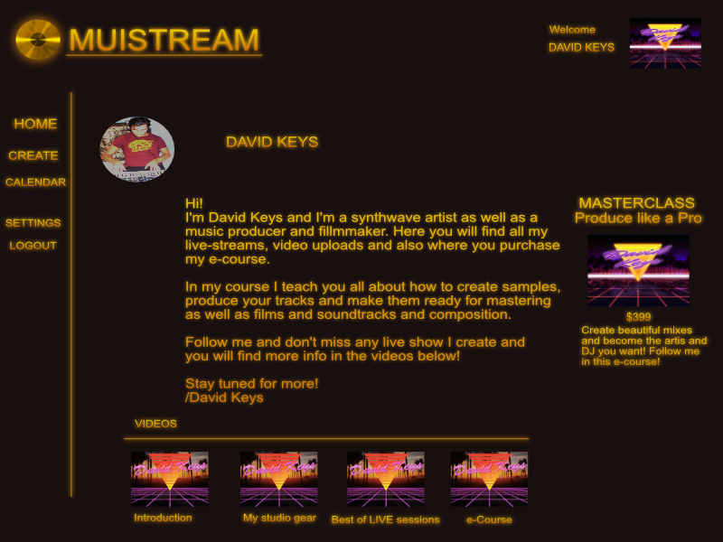 synthwave music project ”David Keys”, a musician and dreamer of the 1980’s era.